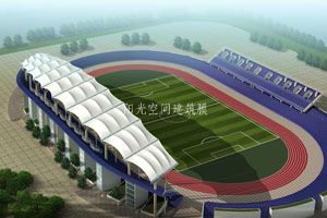 1.雕塑感:张拉膜结构看台独特的曲面形状使其具有强烈的雕塑感。薄膜表面通过张力达到自平衡。负高斯薄膜表面..