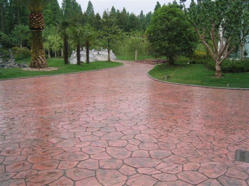 这种新型材料由天然环保的矿物骨料和高强耐磨胶凝材料为主要成分,并添加了多种进口外加剂(如:美国强化剂、德国拜耳着色剂等)组成的高强度、高耐磨的地坪材料。其优点是易施工、一次成型、使用期长、施工快捷、不易褪色等;同时又弥补了普通彩色道板砖的整体性差、高低不平、易松动、使用周期短等不足;在新铺混凝土的表面形成颜色持久的天然石材外观;与周围景观达到完美融合的艺术效果,并具有颜色丰富压印图案多样的特点;该工艺与新铺混凝土同步施工,方便快捷。