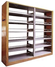 1.书架为框架结构:由底坐、立柱、搁板、挂板、顶板、侧护板、书挡等部分组成。