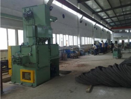 2. 我公司生产的线材抛丸机的除尘器、提升机、底部螺旋输送器、检修门等都与抛丸器开启相关互锁,当抛丸器依次开启运行平稳、可靠后,弹丸闸门方能拉开,分离器内弹丸联续进入抛丸器,由高速旋转叶片抛出,打击至线材表面上,清理掉线材表面上的油垢和铁锈,线材呈现出光亮的金属光泽。实现线材工件快速输送以及连续进料、卸料和抛丸等功能.无酸洗环保线材除锈抛丸清理机该线材抛丸机集无酸洗、环保、节能、高效、使用便捷等优点于一身,其主要功能是非酸洗清除线材表面的氧化皮、油垢及锈垢,使线材表面获得良好的清理效果,同时还具有消除线材内应力,提高线材表面抗疲劳强度,延长使用寿命等特点,消除了线材酸洗除锈对环境造成的污染及对人身体造成的伤害。 - 青岛鼎铸重工有限公司