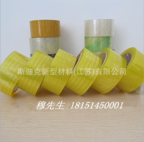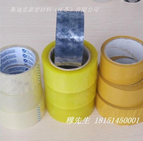 以聚丙烯薄膜(BOPP)为基材,把BOPP原膜经过高压电晕处理后,一面表面形成粗糙,再涂以丙烯酸酯压敏胶(也就是水性压敏胶),形成BOPP胶带母卷半成品,可根据客户需求定制颜色、印刷图案。江苏斯迪克供应多达6种颜色和不同尺寸的形式的中性和个性化的BOPP胶带。