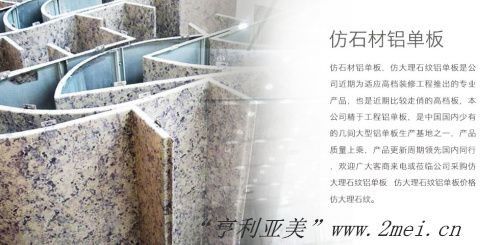 仿石纹铝单板主要应用于建筑室内外装饰,是以水性涂料制作成石纹颜色形成铝单板石纹装饰面,其重量轻、安装方..