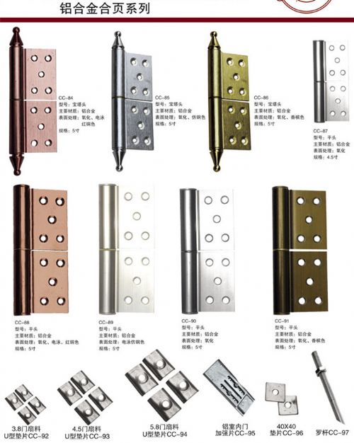 大门合页:它又分普通型和轴承型,普通型前面已讲过。轴承型从材质上可分铜质、不锈钢质。从目前消费情况来看,选用铜质轴承合页的较多,因为其式样美观、亮丽,价格适中,并配备螺钉。 - 佛山市兰明建材有限公司