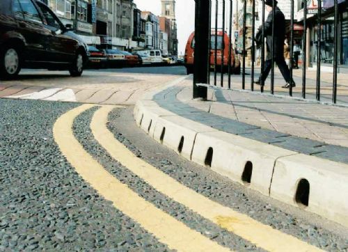 路沿石排水系统是一种马路边排水系统,它总体为树酯混泥土,其路沿石内含有排水安全通道,把路沿石和排水系统恰当的融合在一起,兼具这两种作用。