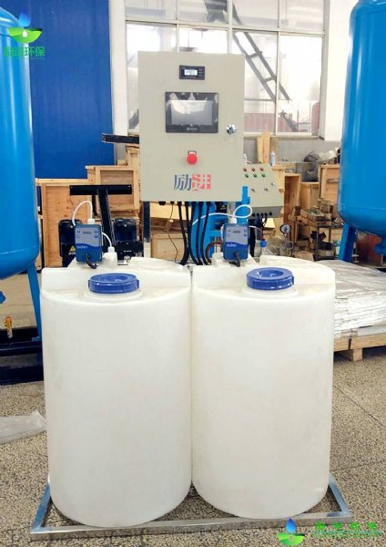 全自动加药装置采用时间程序控制,此控制方式无仪表的支持,先根据系统的运转需要设定自动加药的周期、加药量、加药时间和加药频率。在以后的系统运转过程中,到加药周期,计量泵自动打开加药,加到规定的时间计量泵关闭;到排污周期,计量泵停止加药,排到规定的时间后,计量泵继续开启,补充排污损失掉的药剂,把系统的含药量维持在正常的水平、加到规定的时间计量泵关闭。