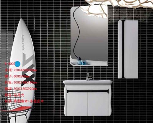 产品型号:AS-6147-100 产品名称:浴室柜 产品材质:多层实木生态板 台盆类型:陶瓷盆+人造石台..