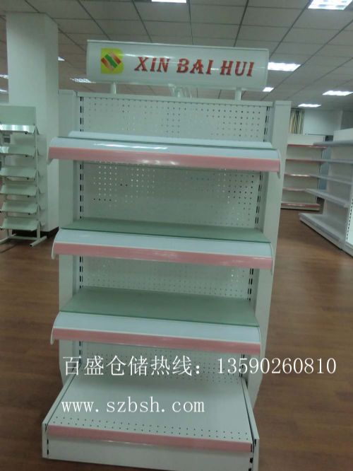 超市货架: 一、便利店货架特点: (1)拆装调节:采用扣接式结构,组合拆装方便,稳固,耐用,层距以每..