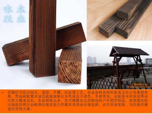 本公司经营多种木质材料:有樟子松防腐木,碳化木,芬兰防腐木,天然防腐的菠萝格等木材,同时也销售成品木制品..