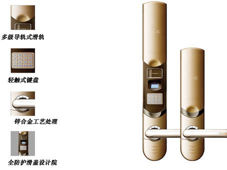 简欧设计风格 配大拉手豪华大气 高强度锌合金面板 滑盖保护设计 五合一开门方式 纳米真空电镀工艺 瑞典F..