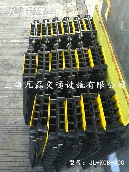 线槽板的头部凸出部分卡着另一块线槽板的尾部凹槽部分,相互卡住可以防止线槽板跟随车辆前行或后退,更好的保护电缆。另外线槽板虽为橡胶制品,有一定的柔韧性,但为了延长使用寿命,*好不要高距离抛扔。使用完毕后如需清洗,可用湿布擦拭完毕后,全部统一放在平整地面并正面叠放,防止底部变形,影响与盖板的贴合度。 - 上海九磊交通设施有限公司