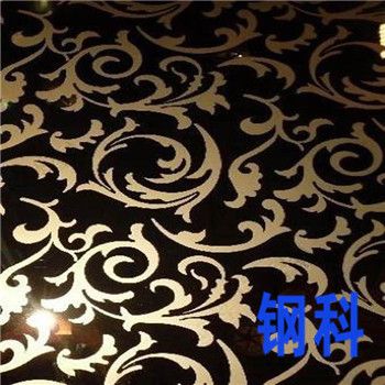 不锈钢蚀刻板是在不锈钢表面通过化学的方法,腐蚀出各种花纹图案。以8K镜面板、拉丝板、喷砂板为底板,进行蚀刻处理后,对物体表面再进行深加工,不锈钢蚀刻板可进行局部的和纹,拉丝,嵌金,局部钛金等各式复杂工艺处理,不锈钢蚀刻板实现图案明暗相间,色彩绚丽的效果。亦可对彩色不锈钢蚀刻,图案都是根据客户来样定制