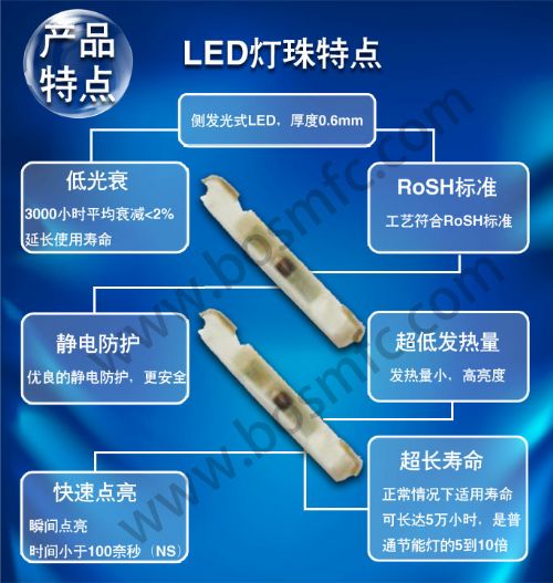 主营业务:LED贴片,全彩LED,三色LED灯,侧发光LED,双色LED,背光LED,超长脚LED等系列产品