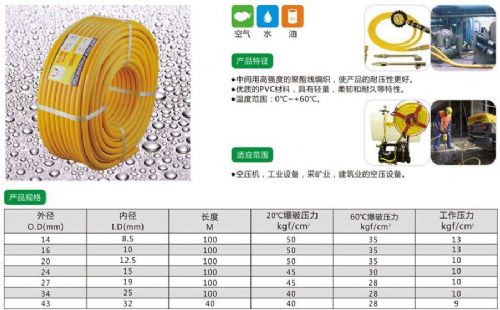 以PVC为主要材料,中间增强层为高强度涤纶纤维精密编织而成,管体具有质轻、柔软、光亮、精巧、美