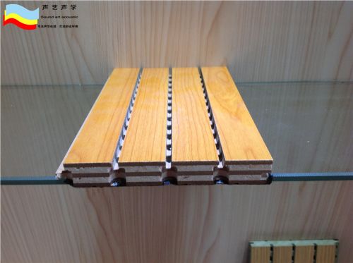 是一种在密度板的正面开槽、背面穿孔的狭缝共振吸声材料,常用于墙面或天花装饰。