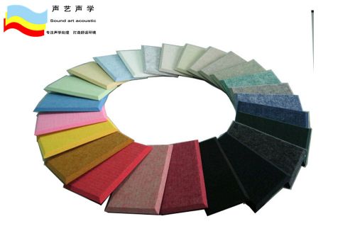 “声艺”声学聚酯纤维吸声板具有高密度、环保、防火、吸声频带宽、装饰性强、施工简单、易于切割、无粉尘污染等性能,饰面颜色及材料选择性广,能很好地满足客户多样化的声学及装饰需求。