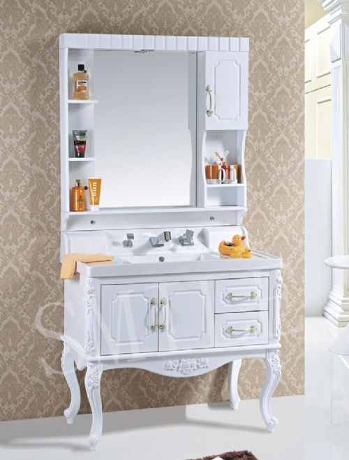 产品型号:AS-6147-100 产品名称:浴室柜 产品材质:多层实木生态板 台盆类型:陶瓷盆+人造石台..