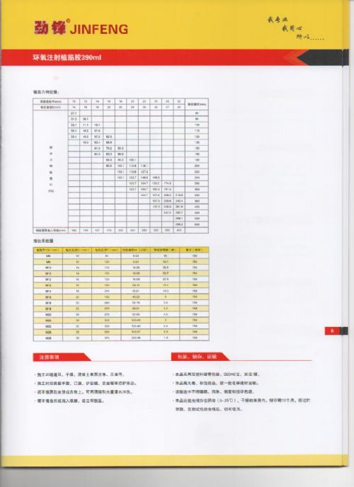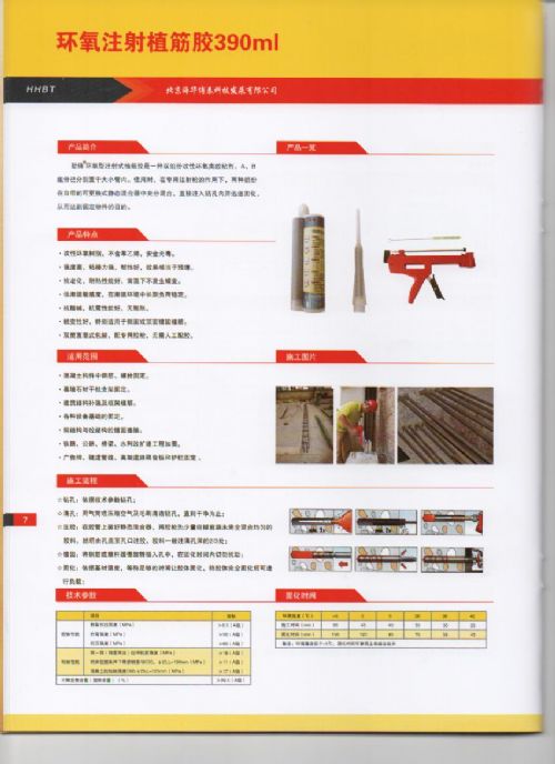 用途:建筑加固植筋 外观:红色 黑色 处干时间:1小时 实干时间:24小时 施工时间:30分钟 耐水性:..