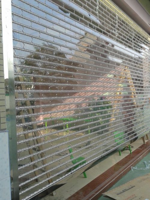 水晶卷帘门又称水晶门、水晶闸、通透式门、透明门、水晶卷帘门,该产品选用进口原料PC(防弹胶)制造而成,具透明、抗雨、隔尘、防盗等效果。用其制成的卷帘门在国外的商业街区广泛使用。成为传统卷帘门的*新替代品,其新颖设计及出众品质备受设计师及用户的赏识。用它装饰店铺\橱窗可以令您的商品有24小时的广告效应,透出琳琅满目的商品,从里到外赏心悦目 - 深圳市宝安区西乡恒发卷帘门厂