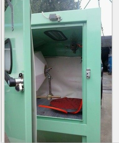推车转盘手动机简介: 1可加装活动台车和转盘,操作时仅需将工件放在台车转盘上,然后将推入机内即可从事喷砂..