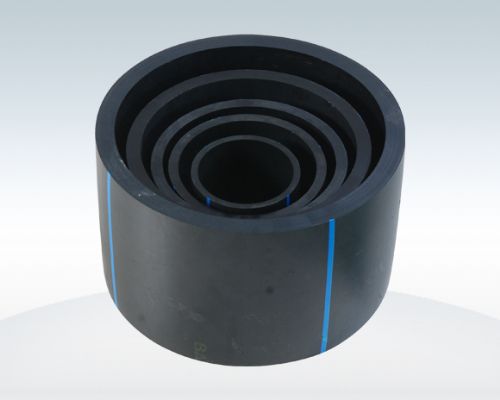 外观描述:黑管蓝条,执行GB/T13663-2000《给水用聚乙烯(PE)管材》;饮用水管卫生性能符合GB/T17219规定;用PE80、PE100二个等级的原料生产,一般用于压力用水输送。