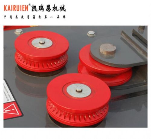 特点:该钢筋弯弧机市面上*一一家所有工作轮全部采用9CrSi材质,军工级淬火锻造而成,确保500吨内无需更换工作轮。另可增配圆管、方管、矩形管、角钢、槽钢、扁铁钢的工作轮模具,真正的达到了一机六用工作效果。