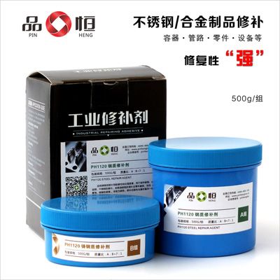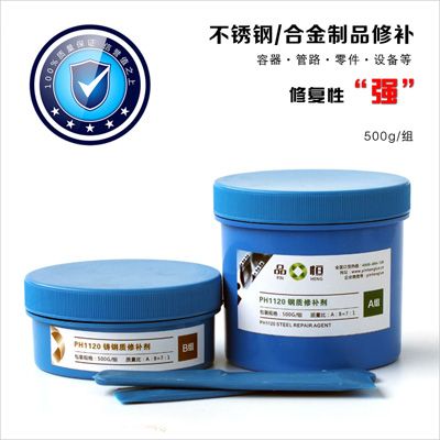 品恒牌PH-1120钢质修补剂由多种合金材料和改性增韧耐热树脂进行复合得到的高性能聚合金属材料,钢质修补剂适用于各种碳钢、合金钢、不锈钢的修补如铸造缺陷的填补及零件磨损、划伤、腐蚀、破裂的修复,修复后颜色与基材基本一致,钢质修补剂具有很高的强度,及优异的耐磨抗蚀与耐老化特性,并可与基材一起进行各类机械加工。
