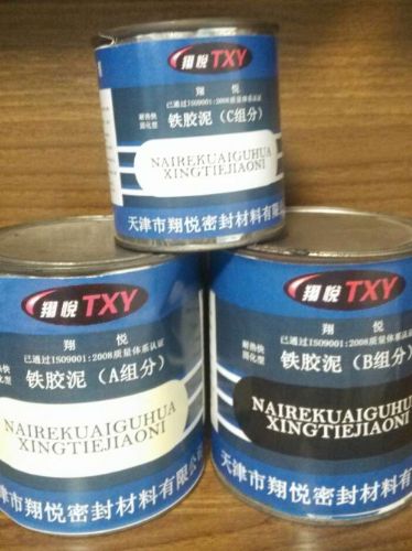2.胶的配和方式,主要用于手工揉和(戴塑胶手套),配成的胶料为黑色面团状,可从任意方向施工,不流淌,不收缩,固化后硬如铁石。