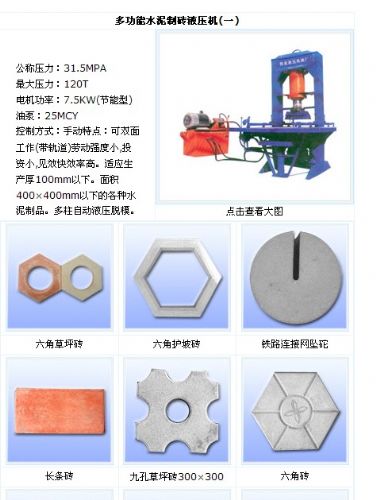 我厂经过20余年的探索、创新,已发展成为一个技术成熟,于高新产品开发设计、生产、营销、一体化的综合企业,造就了一批经验丰富的专业人才,业精于专。本厂专业生产各种彩砖液压机、马路花砖机、人行步道砖机、广场砖机、草坪砖机、地砖机器、水泥垫块机、路沿石机、护坡砖机、水泥管机、水泥护栏机械设备、各种彩砖模具。以设计先进、价格低质量优、远销全国20几个省、市、自治区受到了广大用户的好评。同时我厂生产的水泥制品模具,几百种型号充实到了全国各地的水泥制造行业,我厂还根据客户的要求定做各种水泥制品模具。 - 保定伟业液压机械厂