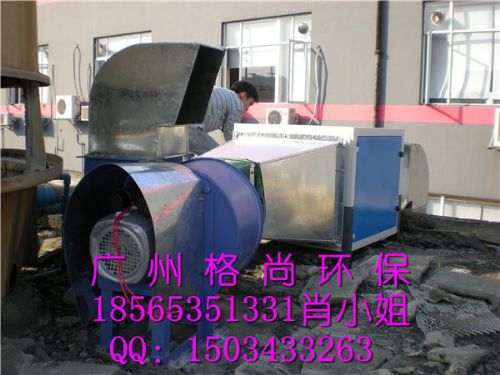 废气由除味器进风口导入,经预处理装置(多目铝合金丝网)去除废气中颗粒杂物,处理后的废气经气流均匀扩散,横穿除味片,使废气通过炭层,废气中含有的炭氢化合物和臭气等有害气体,利用活性炭吸附作用去除异味,使排出的气体异味大大降低,从而使周围达到一个清新环境。活性炭是一种很细小的炭粒,有很大的表面积,而且炭粒中还有更细小的孔----毛细管.这种毛细管具有很强的吸附能力,由于炭粒的表面积很大,所以能与气体(杂质)充分接触,当这些气体(杂质)碰到毛细管就被吸附,起净化作用。