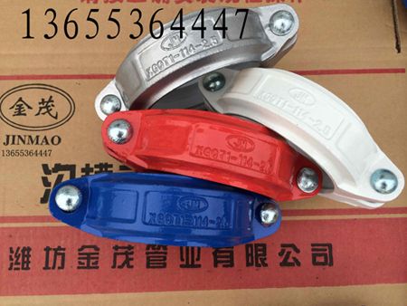 5、卡扣连接在密封要求较高的地方可采用,将橡胶密封圈于被连接管道的外侧,与预先滚制的沟槽相吻合时再扣上卡箍,然后用二颗螺栓紧固即可。 - 潍坊金茂管业有限公司