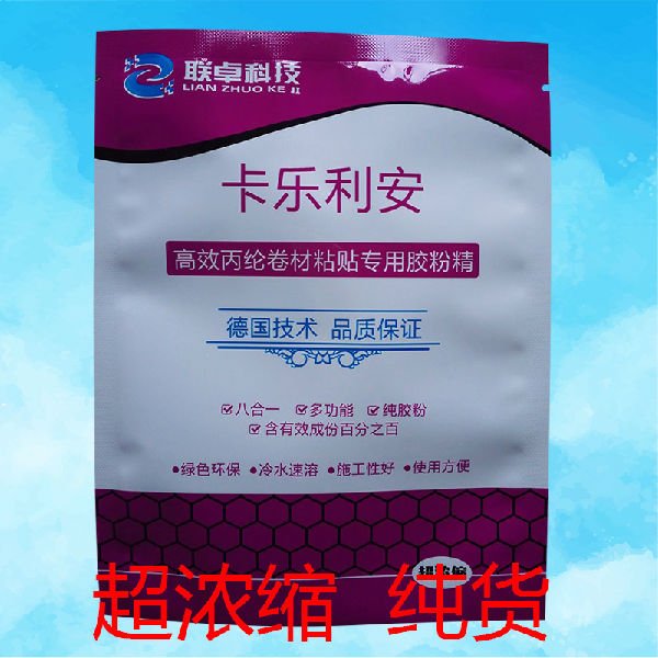 丙纶粘贴胶粉为白色粉末,选天然高分子材料精制而成,*无害,无刺激异味,健康环保。能迅速溶解于冷水中,形成透明粘稠液体,在施工现场随时配制使用,是传统107、801、901等胶水的理想替代品。使用本胶粉可以提高粘贴强度、提高抗渗性,减少龟裂、提高混水泥抗老化能力。还可应用于粘贴涤纶卷材、自粘卷材湿铺、三元乙丙、PVC防水卷材、内外墙腻子砂浆、粘贴瓷砖大理石、喷浆等。
