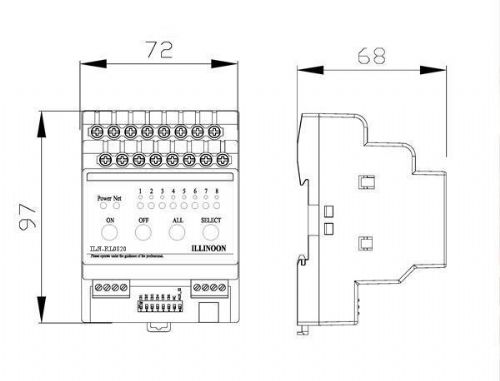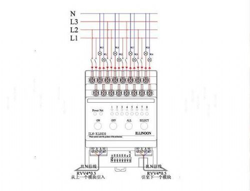 ILN-RL0820(又名智能照明模块)智能继电器模块是智能照明控制系统的输出模块组成部分,具有8路智能继电器输出。智能继电器模块为标准35MM导轨式安装,