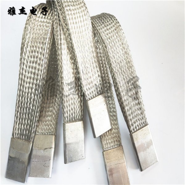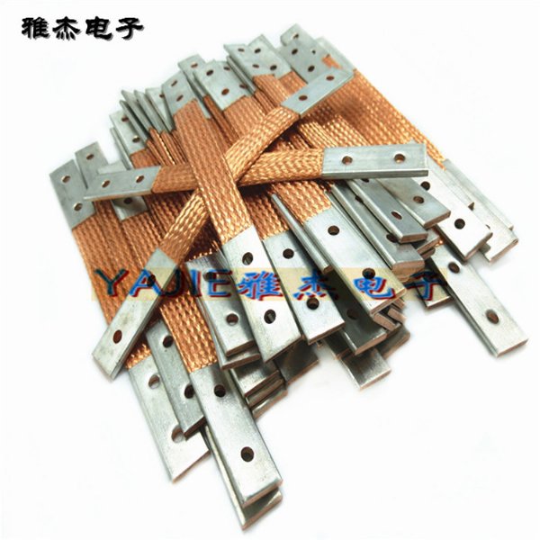 镀锡铜编织线软连接也叫导电带、铜线软连接,镀锡铜编织线软连接、铜编织带软连接等,采用T2无氧铜杆,经多道挤拉工艺拉制成丝,表面裸铜或镀锡或镀银,再进行编织成线,两端压镀锡铜管或纯铜管而成。