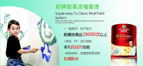采用美国箭牌公司科技改良的“超易洁”配方生产,不但耐擦洗性良好,而且很容易洗干净污渍,使墙面亮丽如新。