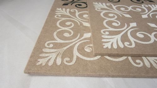 板材可弯成曲面形状。可使室内体形设计更加灵活多变,富有效果。甚至可以将艺术画通过电脑复印在聚酯纤维吸音板上。