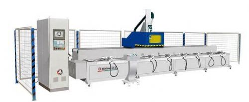 铝门窗幕墙型材的加工机器,轨道交通铝型材加工中心,汽车铝配件LED路灯铝型材,铝合金桥架线槽,铝型材槽孔钻铣销精密加工设备的生产制造.该机器是一台自动化复合加工中心,适用于加工各种长度的铝铜型材、PVC、型钢等金属加工。快速运动:三轴采用高精度直线导轨和滚珠丝杆,运行快速顺畅。高精度加工:采用独特的栋梁式立柱结构,可确保定位的高精度。一次装夹可以同时完成钻孔、铣削、倒角、攻牙等多功能加工。不间断加工:短料可以做机械不停歇多段加工。可根据客户要求定制不同规格的机型铝型材四轴全自动数控加工中心。。铝型材加工中心设备,经济高效环保,安全。一次装夹同时完成多种功能加工。不间断加工,快速运动,省时省工,加工精度高。个性化定制,智能化生产。高端品质,放心产品一、技术参数: