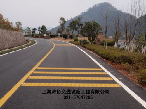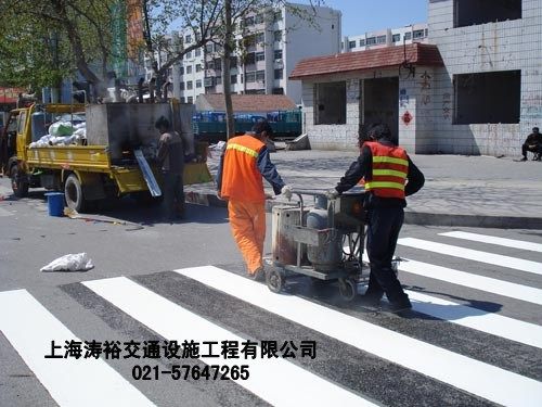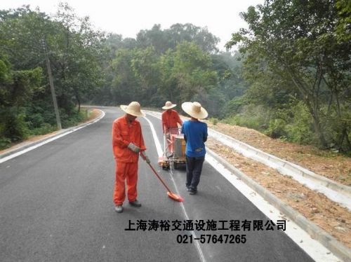 4、底漆干后方可进行热熔涂料,在涂标线的同时撒布反光玻璃珠,增加夜间识别性。 - 上海涛裕交通设施工程有限公司