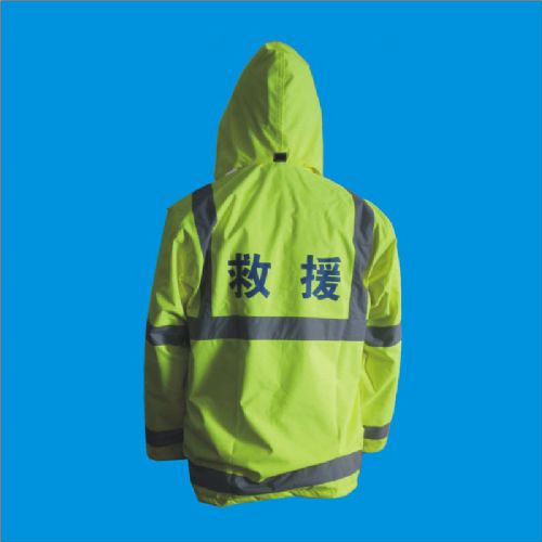 1.面料为300D荧光牛津布反光面料,透气透湿,加100%防水环保涂层,透湿值5000水压5000,防水透气不闷热