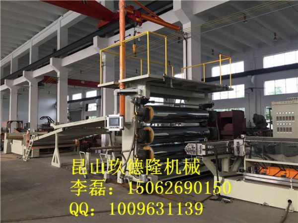 加压式密炼机 → 自动不锈钢提升机→ 强制喂料机 → GLD单螺杆 →2500mm成型模具 →三辊挤压表面处理→牵引机→板材电晕处理 → 切割机 → 堆放 →油压发泡机
