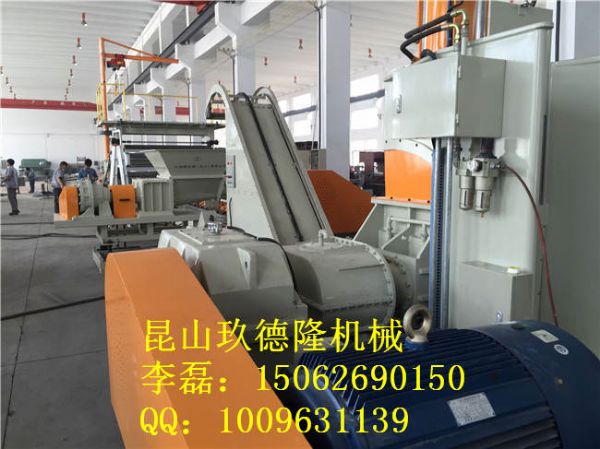 密炼机功能:树脂、填充物、助剂等物料投放到密炼机中,通过特定形状并相对回转的转子、在可调温度和压力的密闭状态下连续性地对聚合物材料进行混炼,主要由密炼室、转子、转子密封装置、气动加压装置来完成物料的塑化和分散;在通过卸料装置、传动装置来完成放料程序;密炼机是密封的混炼室因而它的工作环境比较干净;双转子为不同步转速,有很强的剪切功能,在生产过程中的边角料及因在后续模压时产生的不良品不用破碎就可以直接投入到密炼机中再次挤出板材; - 玖德隆机械(昆山)有限公司