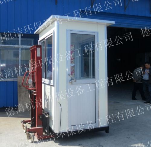 主要材质介绍: 外墙墙体采用阻燃夹芯板、外贴高级铝塑板,内墙为高级铝塑板,地板铺灰色凸球形防滑胶垫,铝型材外圆铝包边,装铝合金门窗。内设照明吸顶灯、空调插座、带漏电保护电源控制箱。 - 德清杭洁环保设备工程有限公司