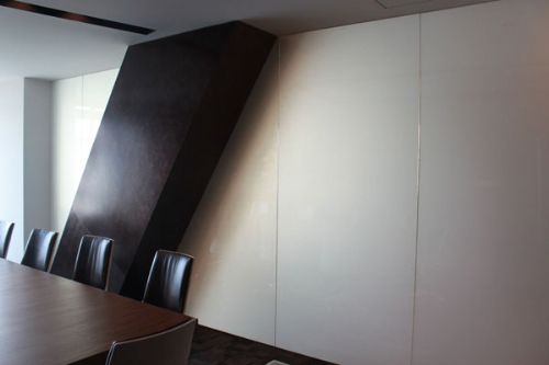 借助上述原理,制造商将PDLC液晶调光膜夹层于两层玻璃之间,制成夹层结构的电控调光玻璃,可控制玻璃之透明及不透明状态,并拥有安全玻璃的一切特性,该产品广泛应用于空间设计、隐私保护及高清投影等众多领域。 - 广州欧毅建材科技有限公司