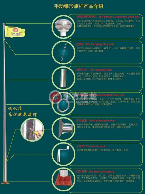 度顺风旋转、旗帜无缠绕;不锈钢绳无生锈,无断绳之忧,外型美观大方。 - 北京东方旗龙科技有限公司