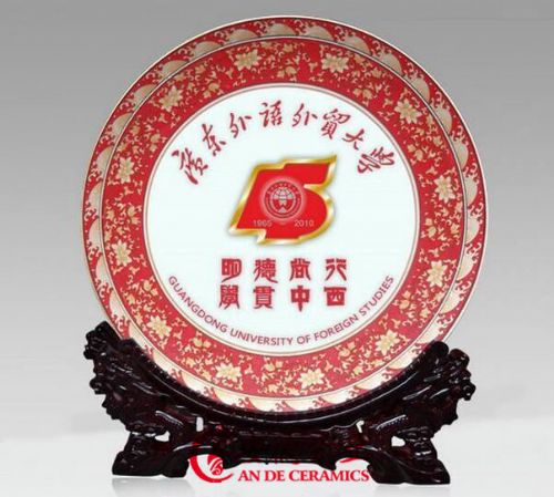 规格有15cm-40cm不等。陶瓷纪念盘的工艺有贴花,手绘,浮雕等。陶瓷纪念盘的瓷质有白瓷、高白瓷、骨质瓷等不同质量的瓷质。陶瓷纪念盘的图案可用青花山水,照片纹饰,人物纹饰,花草纹饰, 欢迎订购您的图案。我公司成立至今,已为一些知名学校,企业,*和单位制作过纪念礼品陶瓷纪念盘!
