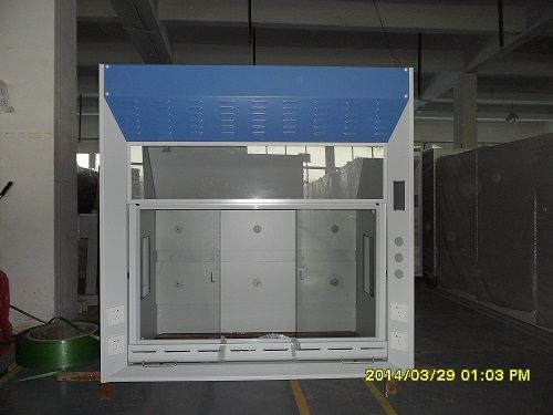 3、日光灯说明:日光灯隐藏于面板上,不与通风柜内气流接触,易更换。采用30W日光灯 1支,并设有5mm钢化玻璃。