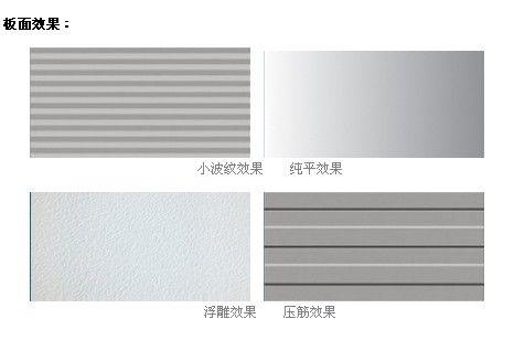 板面效果可选择纯平(钢板厚度≥0.7mm)、水波纹、方波等