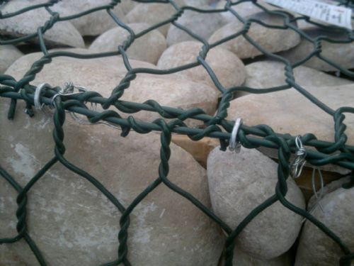 由高抗腐蚀、高强度、具有延展性的低碳钢丝或者包覆PVC的以上钢丝使用机械编织而成,使用该网制作而成的箱型结构就是石笼。根据ASTM和EN标准,所使用的低碳钢丝直径根据工程设计要求而不同。一般介于2.0-4.0mm之间,石笼网钢丝的抗拉强度不少于38kg/m2,金属镀层重量一般高于245g/m2,石笼网片的边缘线直径一般要大于网线直径。其双线绞合部分的长度不得小于50mm.以保证绞合部分钢丝的金属镀层和PVC镀层不受破坏。