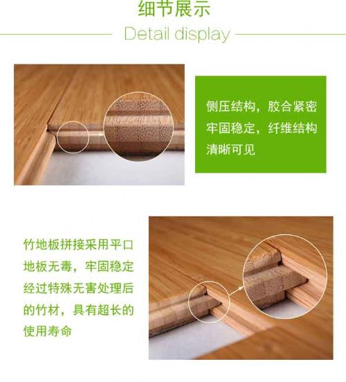 有较多的维管束分布,纹理清晰。就是说,竹地板表面应是刚好去掉竹青,紧挨着