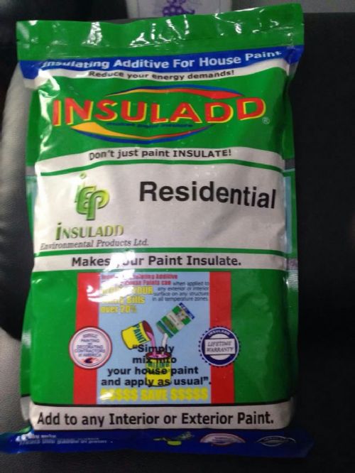 是一种粉状添加剂,与普通的内外墙涂料混合后使用,在墙面上产生一个隔热层或保温层。涂刷两层可以达到效果。Tech Traders, Inc.还提供在工厂里预混好了的INSULADD涂料。