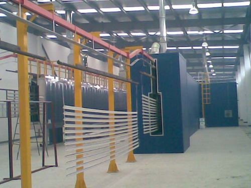 一、该全自动氟碳喷涂系统装置是通过悬挂输送线,将工件输送至底漆、面漆、罩光漆喷房,进行自动化静电涂装。
